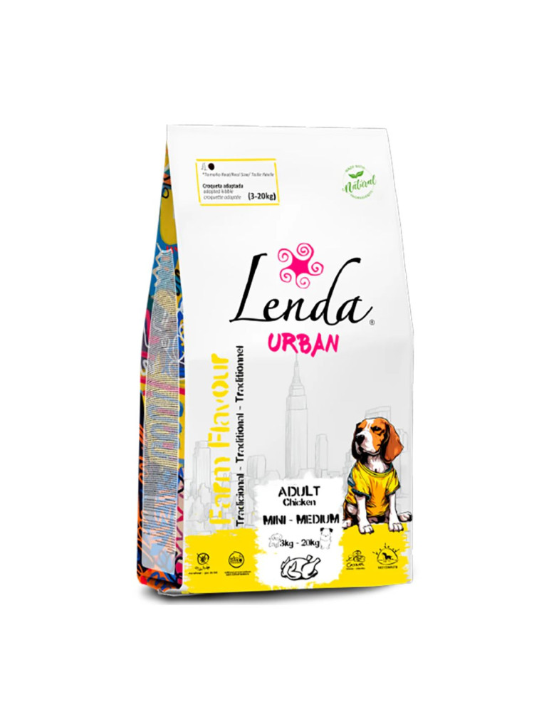 Dans la gamme Lenda Urban, le format 15 kg est destiné aux chiens adultes de plus de 20 kg. Les croquettes de ce format présentent un diamètre d’environ 18 mm, spécifiquement adapté à la morphologie des grands chiens
